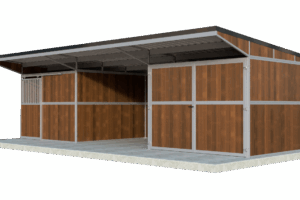 Alle unsere Pferdeställe können selbstverständlich in Schritten von 3000mm, 3500mm und 4000mm erweitert werden. So kann zum Beispiel ein zusätzlicher Unterstand, ein Heu- und Futterlager, ein Waschbereich oder eine Sattelkammer in der von Ihnen gewünschten Ausführung hinzugefügt werden. Denken Sie an eine breite Doppelflügeltür oder eine Schlupftür mit Zylinderschloss und Riegel.