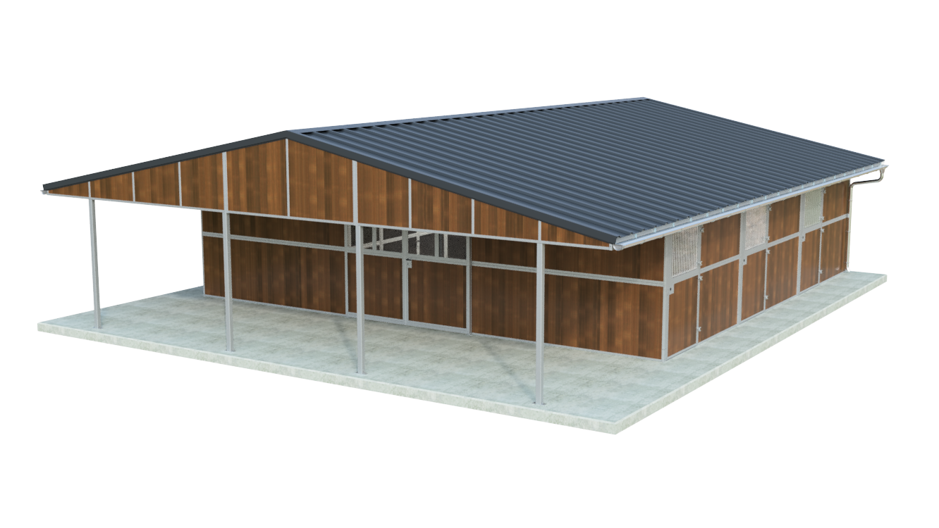 Unsere Pferdeställe sind modular erweiterbar – in Schritten von 3.000 mm, 3.500 mm oder 4.000 mm. Sie können zusätzliche Boxen, eine Heu- und Futterlagerung, eine Waschplatz oder eine Sattelkammer nach Wunsch ergänzen. Auch vollständig schwenkbare Frontwände für die maschinelle Entmistung, geschlossene Trennwände oder andere individuelle Anpassungen sind möglich – sprechen Sie uns gerne an!