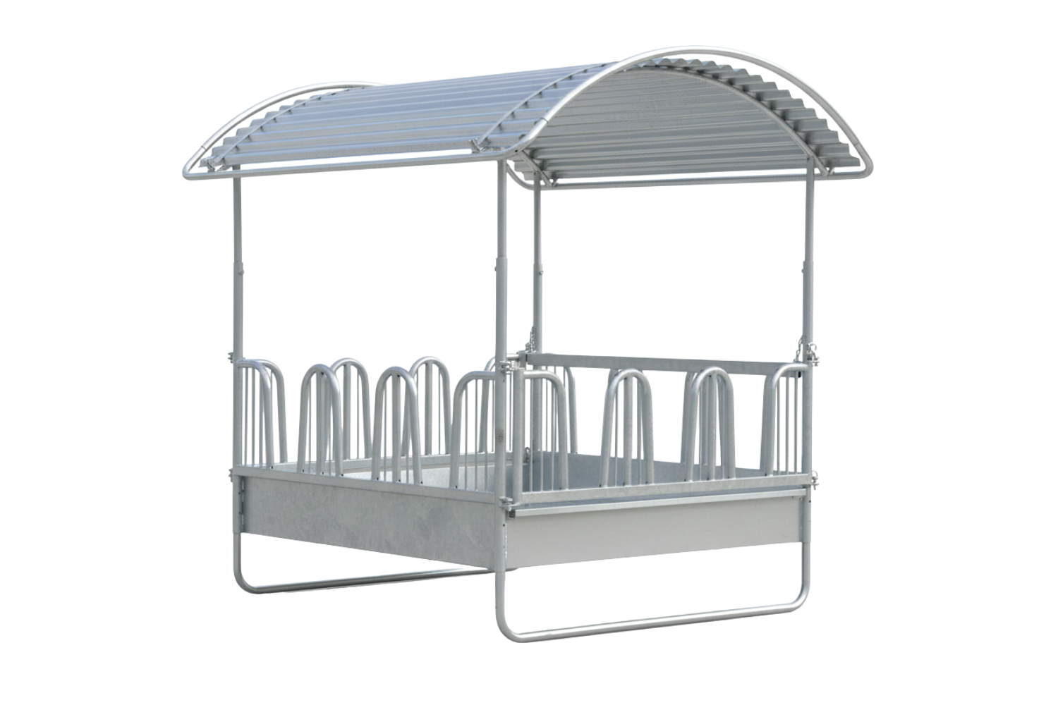 Die Heuraufe ist zusätzlich mit einem Stahldach ausgestattet, wodurch sie für alle Wetterbedingungen geeignet ist. Durch die integrierte Dreipunktaufhängung mit Schutzbügel lässt sich die Raufe leicht mit einem Traktor oder Radlader transportieren und sicher versetzen, ohne dass sich Pferde, Rinder oder andere Tiere verletzen können.