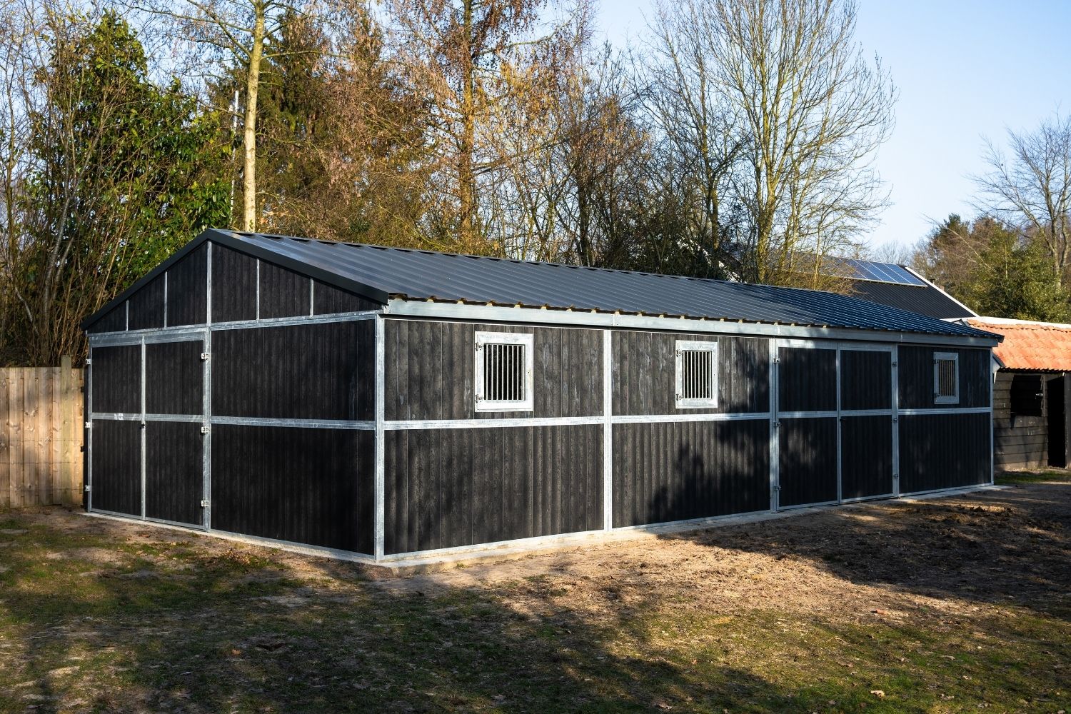 Das Satteldach ist mit hochwertigen Sandwichpaneelen ausgeführt. Diese Bauweise stabilisiert das Innenklima und minimiert Temperaturschwankungen im Jahresverlauf. Das Ergebnis ist eine komfortable und nachhaltige Unterbringung für Ihre Pferde – zu jeder Jahreszeit.