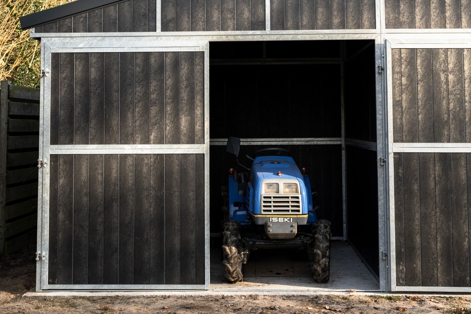 Hier finden Futter, Decken, Werkzeuge und weiteres Zubehör ihren festen Platz. Selbst ein kleiner Hofschlepper lässt sich problemlos unterbringen. Der Lagerraum ist direkt mit dem Stall verbunden, funktioniert jedoch als eigenständiger, übersichtlich strukturierter Bereich. Das macht diesen Außenstall nicht nur zu einer Lösung für die Pferdehaltung, sondern auch für eine effiziente Hoforganisation.
